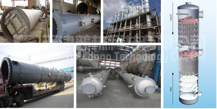 精餾塔是進行精餾的一種塔式氣液接觸裝置。利用混合物中各組分具有不同的揮發(fā)度,即在同一溫度下各組分的蒸氣壓不同這一性質(zhì),使液相中的輕組分(低沸物)轉(zhuǎn)移到氣相中,而氣相中的重組分(高沸物)轉(zhuǎn)移到液相中,從而實現(xiàn)分離的目的。